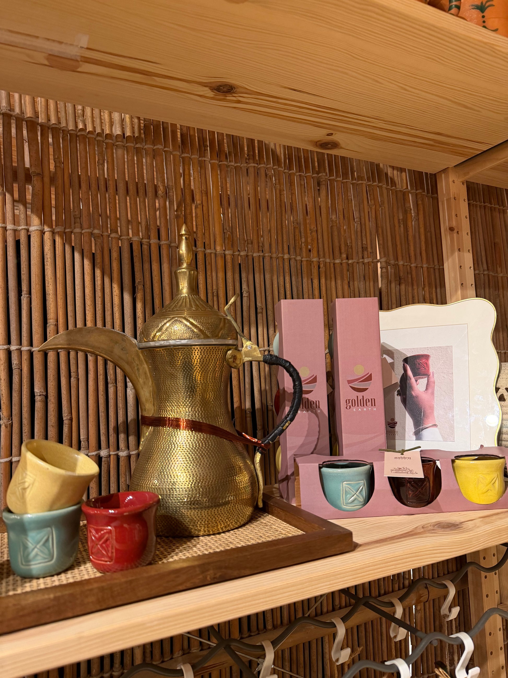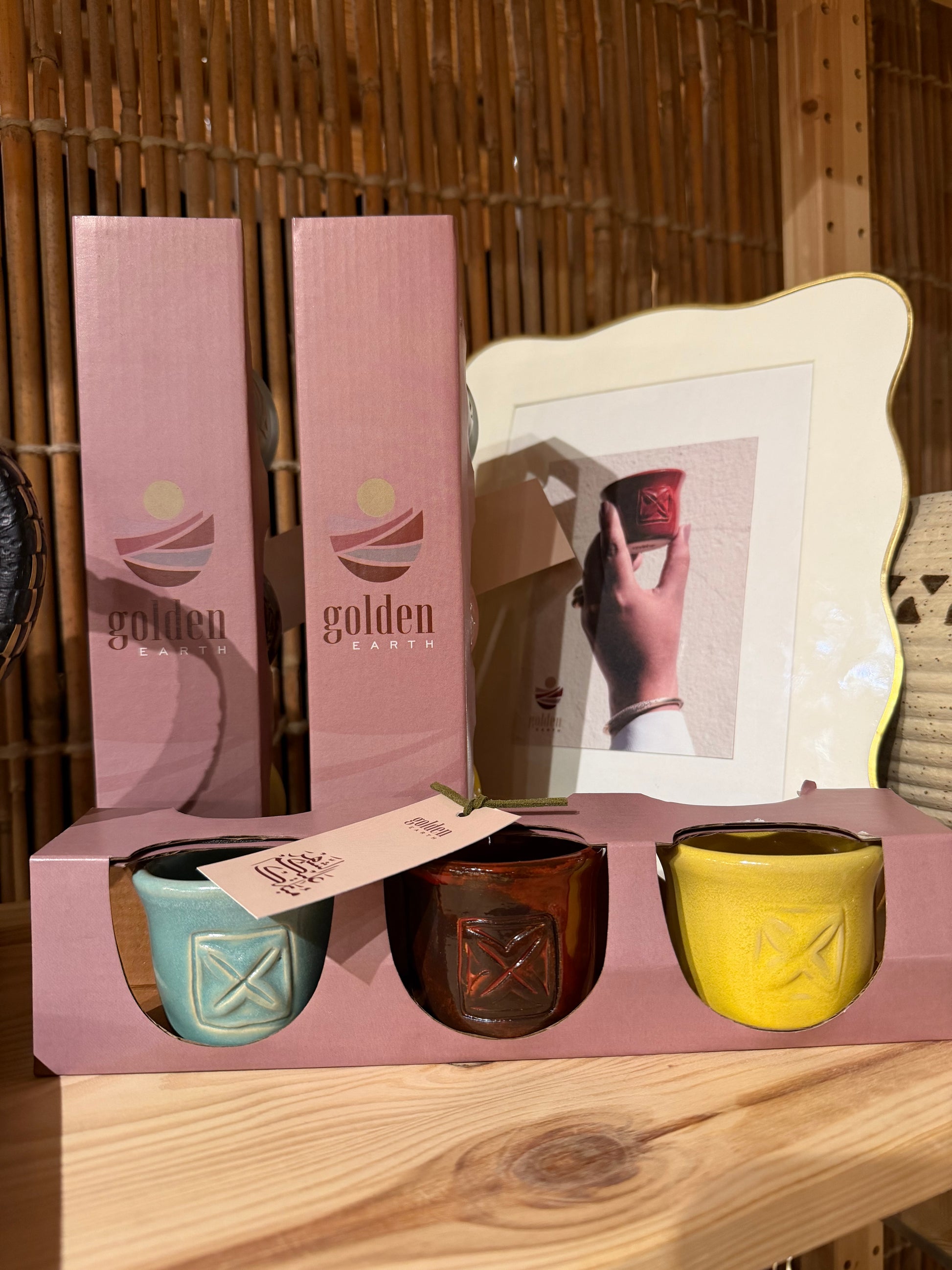مجموعة 3 فناييل قهوة عربية بألوان مميزة: الأصفر، الأحمر، والأزرق